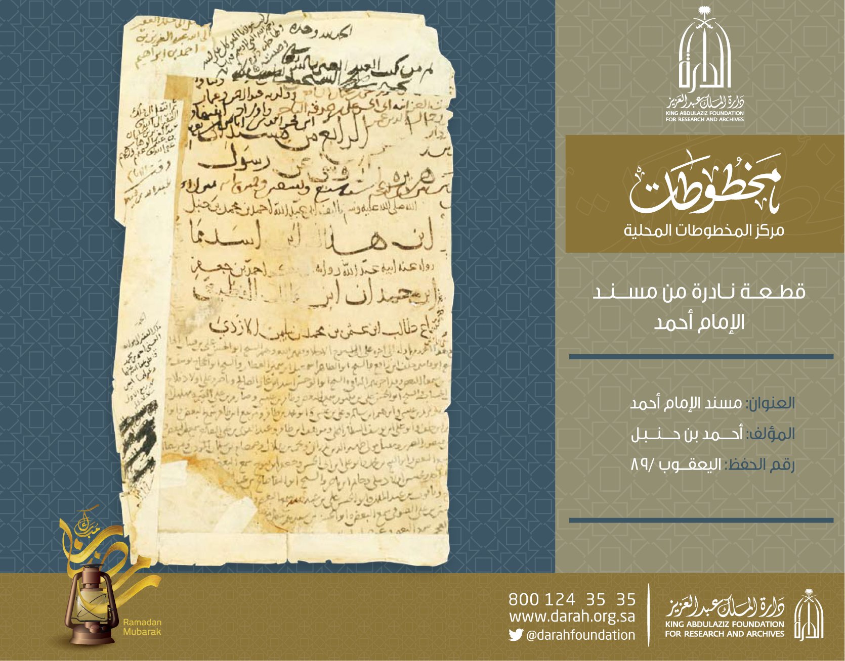 دارة الملك عبدالعزيز On Twitter مخطوطات الدارة مخطوطة نادرة من مسند الإمام أحمد بن حنبل قطعة نادرة من مسند الإمام أحمد بن حنبل وعليها وقف الإمام عبدالله الفيصل وعلى المخطوطة عد ة تمل كات